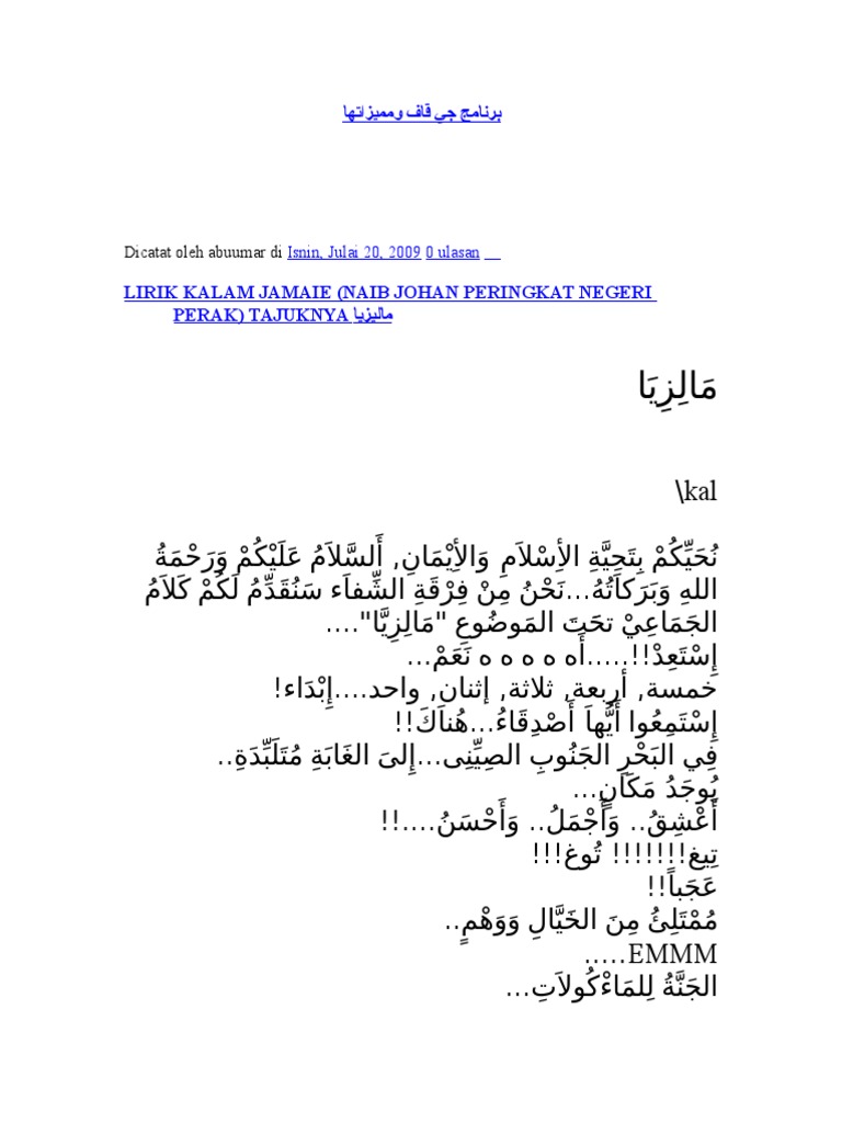 Share to Twitter Share to Facebook Share to Pinterest. Naib Johan Kalam Jamaie SBPIS Pada 7 Mei 2011 Sabtu bertempat di MITC Melaka Panitia Bahasa Arab telah menghantar peserta bagi pertandingan Kalam Jamaie sempena Karnival Pendidikan Melaka. Jenis-jenis Jamak dalam Bahasa Arab 1.